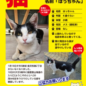 はっちゃんが1月18日日曜日の17時ごろ行方不明になりました😿 おそらくは千鳥台か向陽台あたりにいるかと思いますが・・・・ 今日みんなで捜索しましたが見つかりませんでした。 はっちゃん見かけた方ご連絡下さい。 2年前に瀕死の状態で家にきた猫です。 こんなに大きくなり元気に過ごしていました。 大変人懐 …